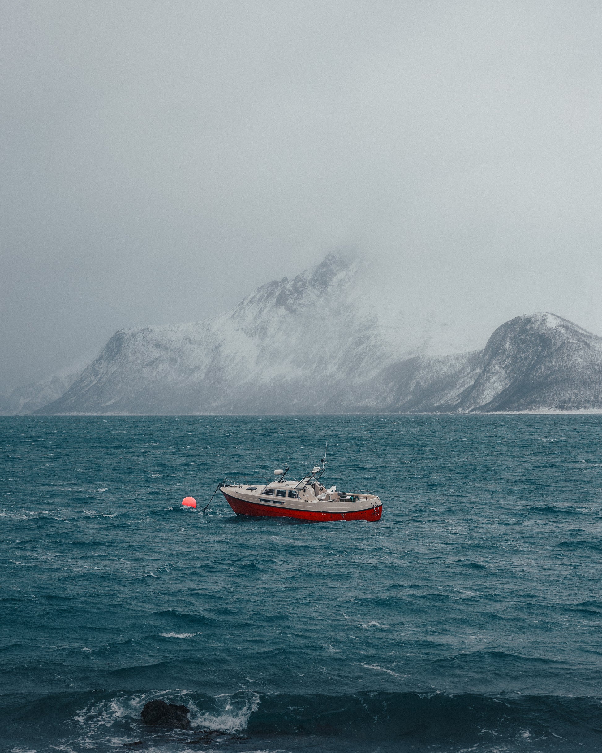 As a snowstorm approached, this lone boat bobbed in the choppy waters, dwarfed by the towering mountains shrouded in mist. The harsh winds and darkening sky added a sense of isolation and resilience to the scene, as if the boat were bracing itself against nature’s power. Capturing this moment, I felt the quiet tension of the approaching storm—a reminder of the smallness of human presence in the face of nature’s vastness.
