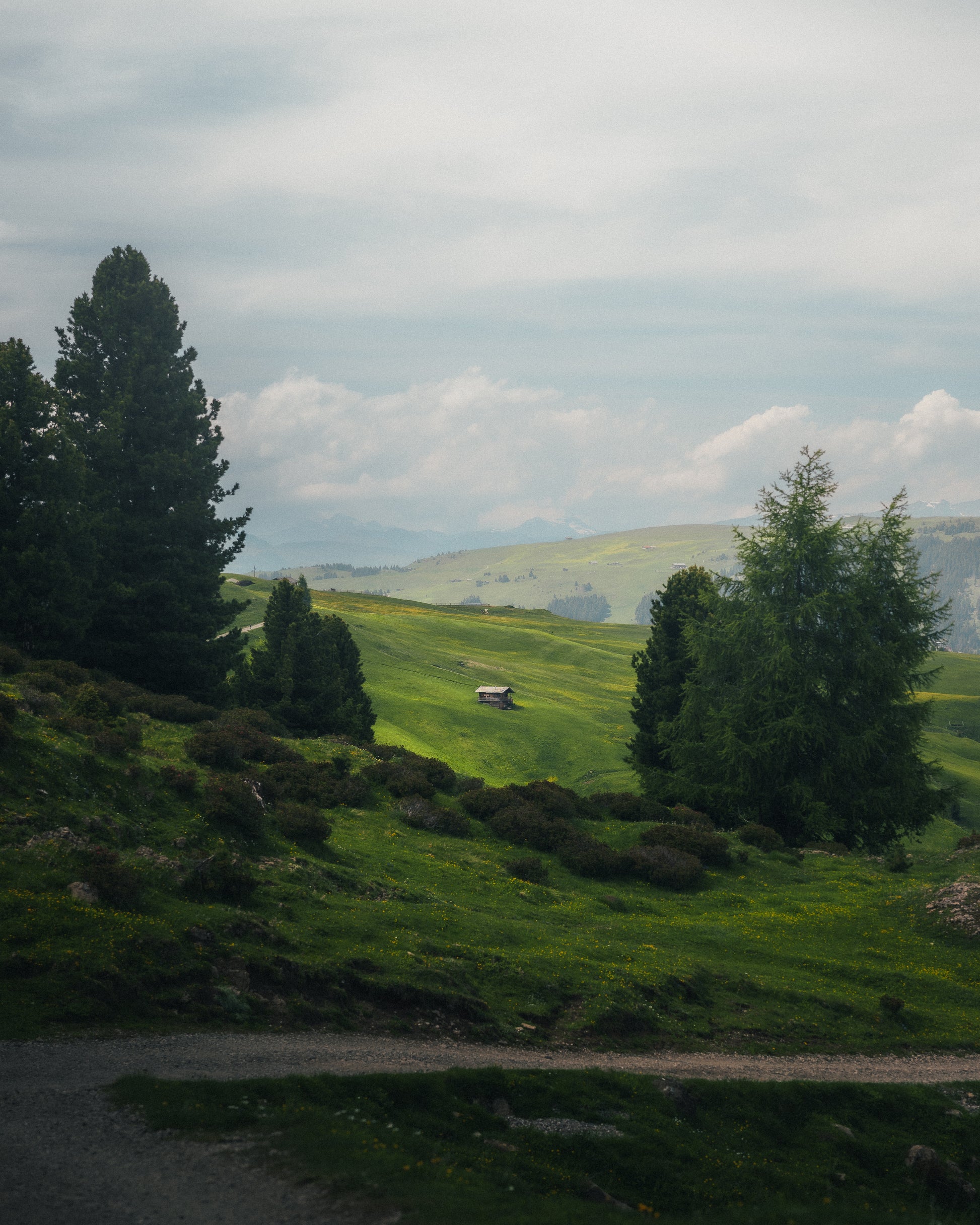 While most are drawn to the sweeping, grand views of Seiser Alm, I found myself captivated by this quiet corner. A small farm shed rests peacefully between the trees, framed by the vibrant greens of the hillside. There’s a calm simplicity here, away from the dramatic peaks, where the lush grass and foliage take center stage. This image speaks to the quieter side of the Dolomites, a gentle reminder of the beauty found in more intimate landscapes.